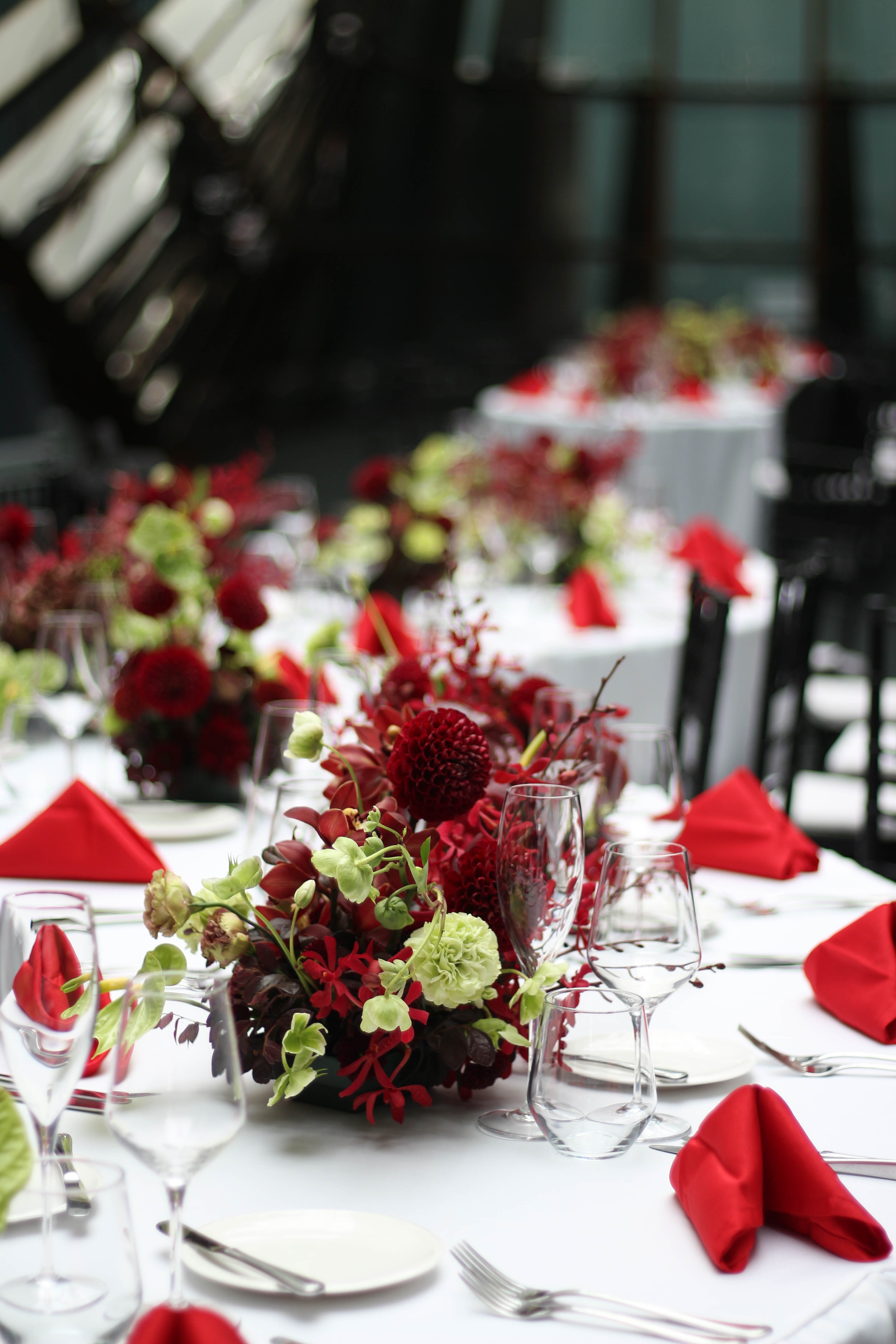 Designed to complement branding. From conferences and corporate dinners or luncheon, to brand launches or private events, with arrangements kept clean and intentional.